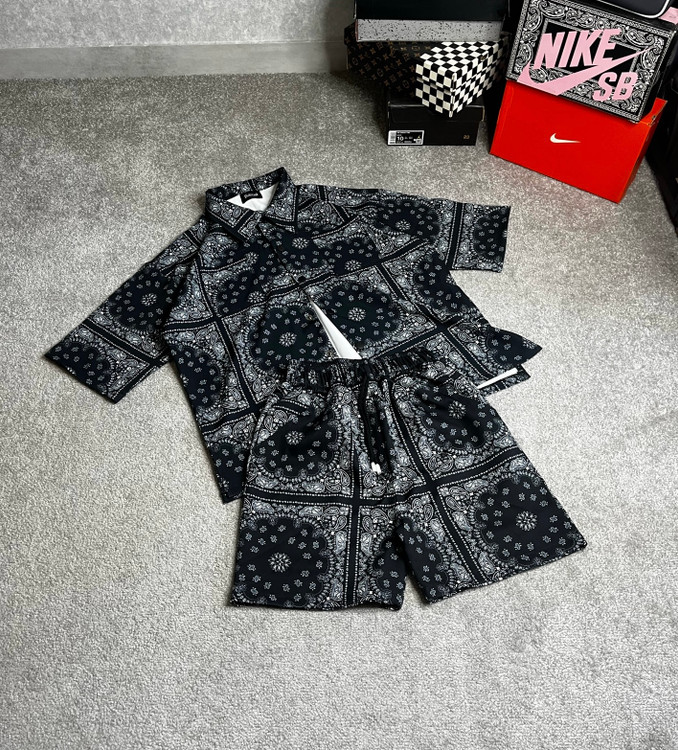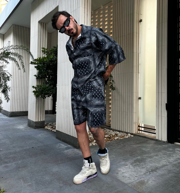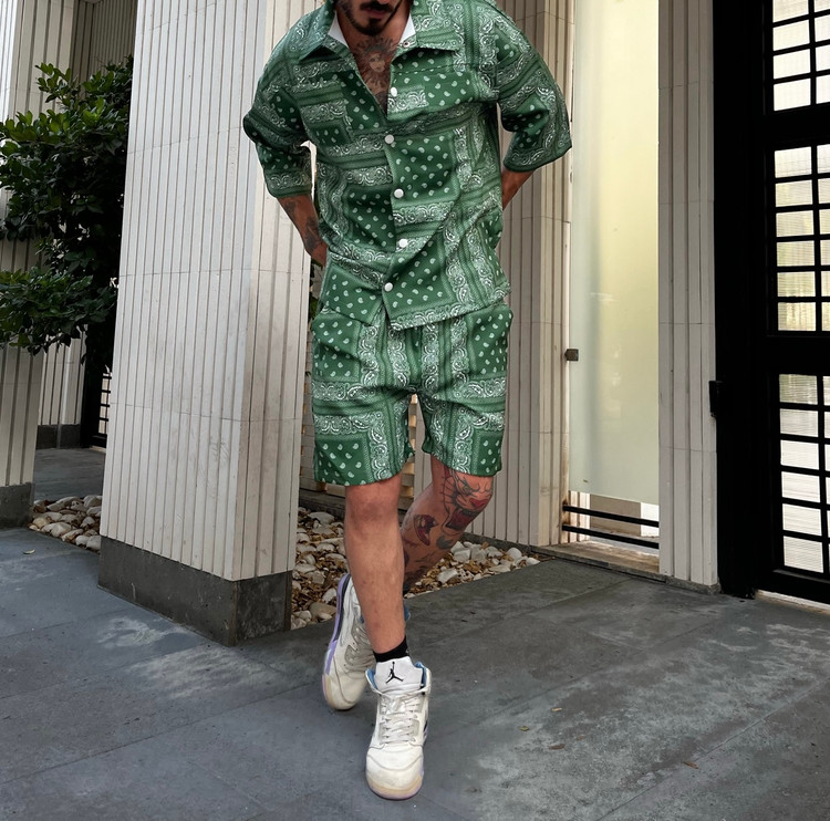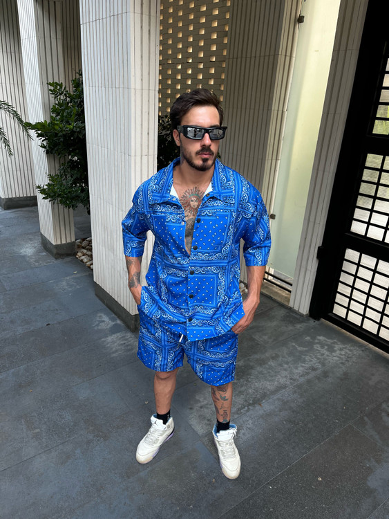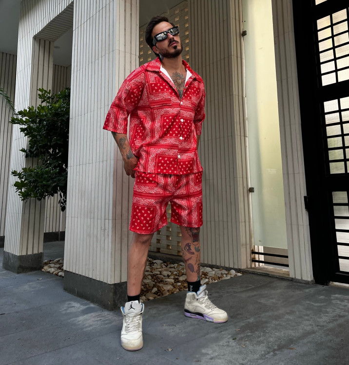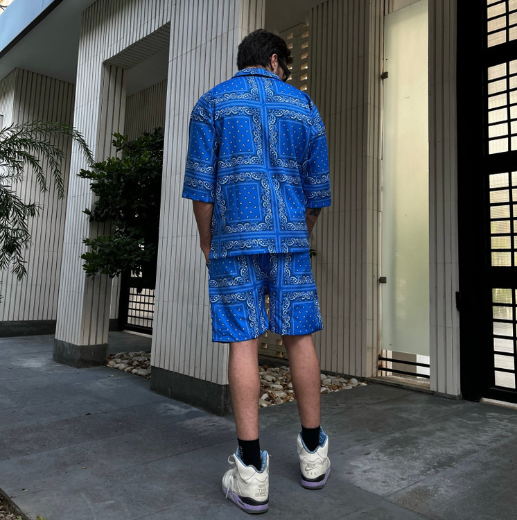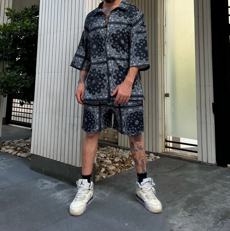 ست یونیسکس شلوارک ساحلی و پیراهن آستین کوتاه باندانا