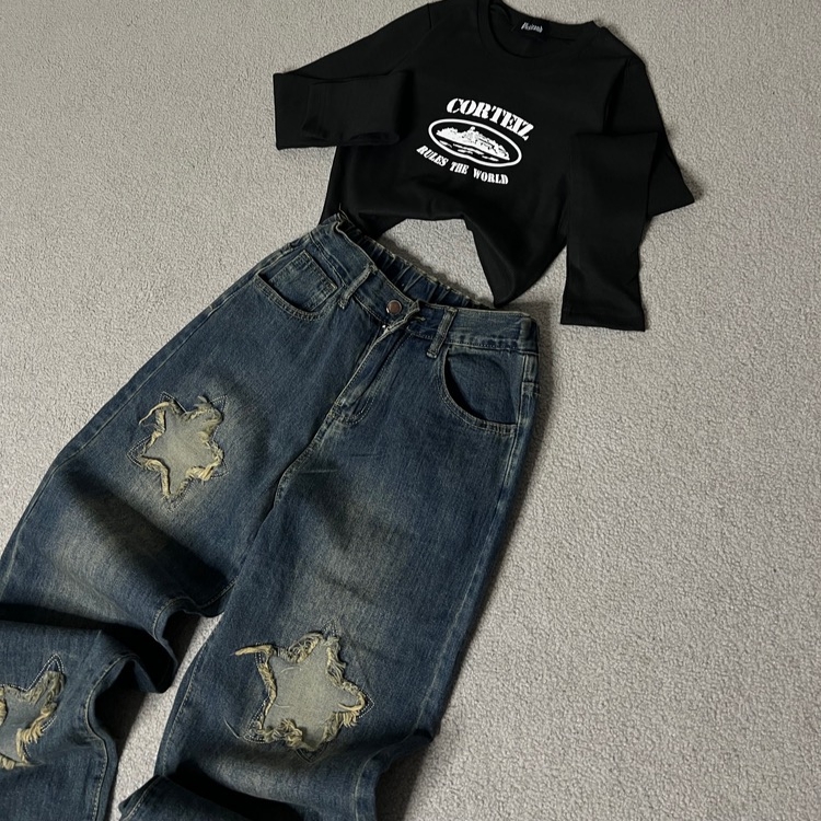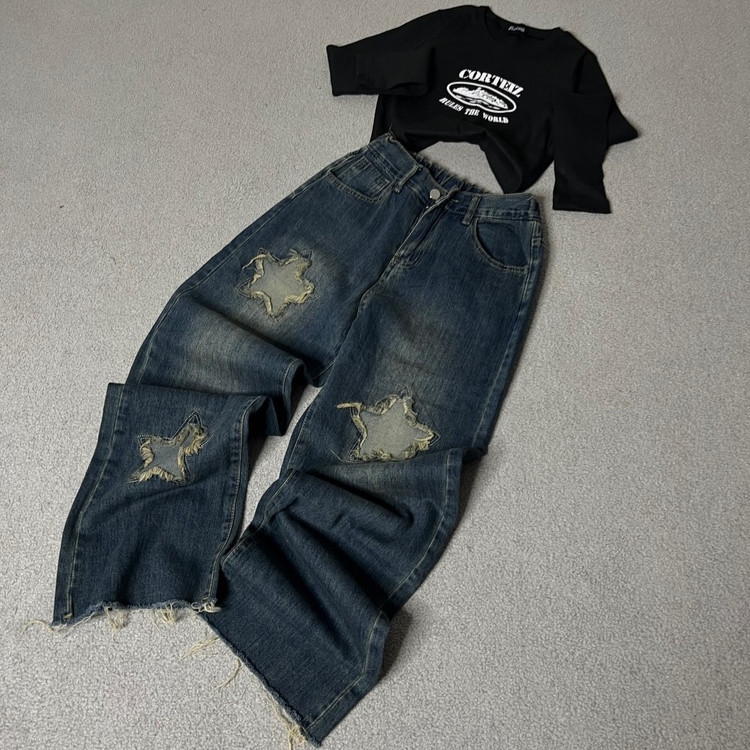 شلوار جین واید ستاره دار